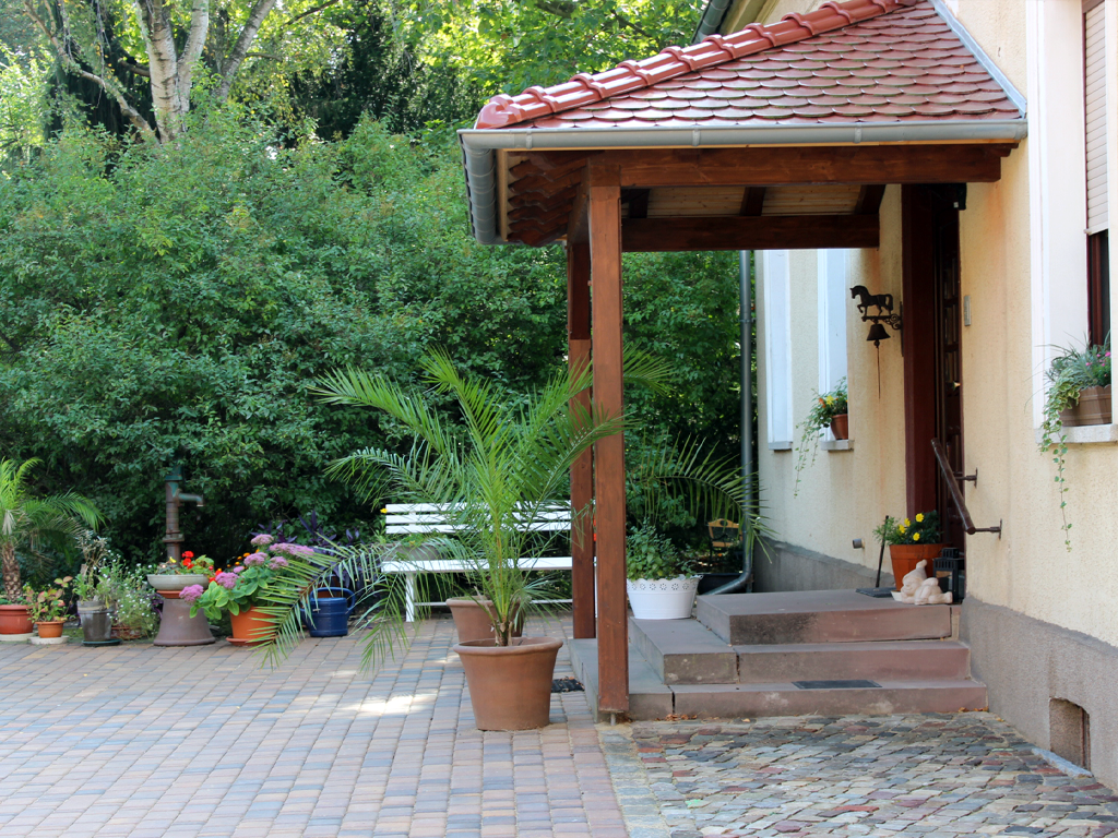 Es besteht eine gute Verbindung mit Bus und Bahn zur 2 km entfernten Landeshauptstadt Magdeburg. Genießen Sie den Blick in den wunderschönen Bauerngarten mit seinem alten Baumbestand, welchen Sie natürlich auch gern nutzen dürfen.